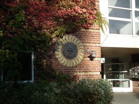 Solsikke på gavl ved indgang |  Solsikke på gavl ved indgang